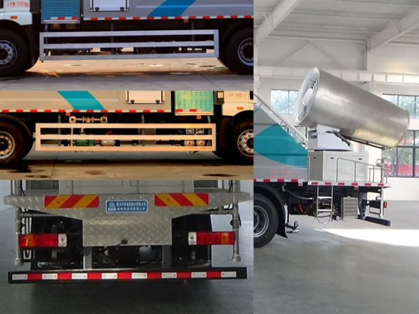 其它 | 1. 介質(zhì):抑塵劑,有效容積7.31立方米,總?cè)萘?.67立方米,罐體總長2700mm,截面(寬*高mm)2450*1300; 整車長/前伸/后伸對應(yīng)關(guān)系(mm):11350/550/1000,11200/550/850,11070/550/720,10800/0/1000,10650/0/850,10520/0/720,10350/550/0,9800/0/0;2.側(cè)防護防護裝置采用鋁合金材質(zhì),后下部防護裝置采用Q235材質(zhì);側(cè),后下部防護均采用螺栓連接,后防護尺寸(高×寬):120×60(mm),離地面高度440mm; 3.儲能裝置單體種類/生產(chǎn)企業(yè): 磷酸鐵鋰電池/寧德時代新能源科技股份有限公司;儲能裝置總成的生產(chǎn)企業(yè):寧德時代新能源科技股份有限公司;驅(qū)動電機型號TZ370XS-LKM1101對應(yīng)電機控制器型號KTZ54X45S-LKC1101,功率:160(KW);驅(qū)動電機型號TZ366XS50EA對應(yīng)電機控制器型號KTZ54X40SP5S;功率:180(KW); 4.ABS系統(tǒng)生產(chǎn)廠家/型號 :1.長春科密汽車制動有限公司/CM4XL.2.WABCO/44600XXXX0;5.專用功能及裝置描述:噴霧系統(tǒng)裝置,儲液罐,氣控系統(tǒng),主要用于道路,廣場或固定場所降塵等作業(yè)功能;選用5300mm軸距,選裝不帶前置高炮,選裝后部噴灑裝置 | ||
