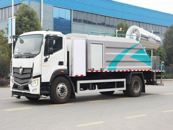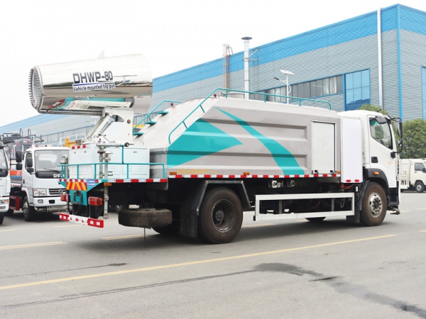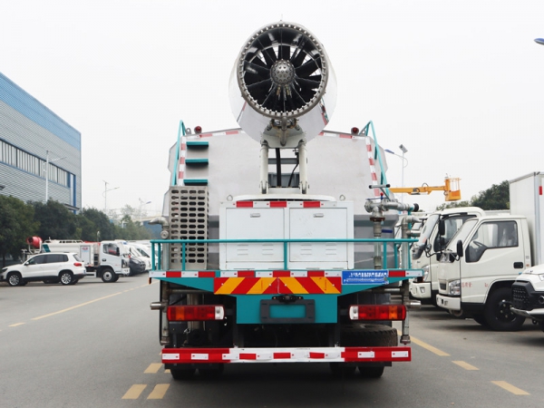 工作原理:采用自吸式雙級離心泵,效率高、灑水寬度大、水槍射程遠(yuǎn),低壓水泵由底盤變速器取力器通過傳動軸直接傳動。霧炮機組由底盤電池帶動霧炮風(fēng)扇電機、不銹鋼多級離心泵,進(jìn)行噴霧降塵工作。