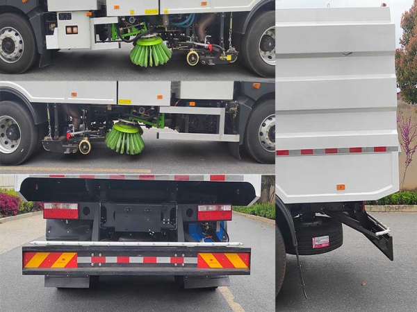 (3)長途轉(zhuǎn)場托運(yùn)時(shí),車輛前后左右應(yīng)有固定防滑裝置,且四周留有200mm以上空隙,若自行轉(zhuǎn)場時(shí)一般應(yīng)將前噴嘴和后灑水器卸下以防松動(dòng)丟失。