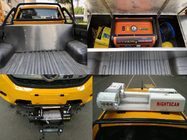 其它 | 1.該車配置專用設備箱,裝備發電機組及電力維修工具.用于電力系統的工程搶修和應急救援;2.可在全國范圍內銷售;3.儲能裝置種類/生產企業:三元復合鋰離子電池/多氟多(焦作)新能源科技有限公司;4.電機型號/生產企業:TZ230XSD91/深圳市大地和電氣股份有限公司;5.電機額定功率:60kW,峰值功率:120kW;6.ABS型號及廠家:WX80,浙江萬向精工有限公司;7.選裝藍色進氣格柵,選裝尾部標識;選裝貨箱二級踏板時整車長為5619mm;前懸/后懸為905/1214;配備高桿照明燈時整車高2075mm;8.可選不裝高桿照明燈,外繩鉤. | ||