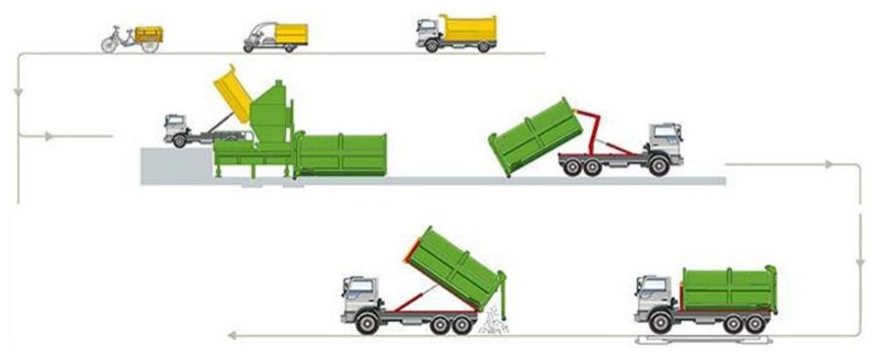 后平臺分體式水平壓縮垃圾處理站設(shè)備,一般采用一機(jī)兩箱的配置,即一個壓縮主機(jī)兩個壓縮垃圾箱。該設(shè)備主要建設(shè)在生活小區(qū)、街道、農(nóng)村、鄉(xiāng)鎮(zhèn)等,對垃圾的集中清理轉(zhuǎn)運(yùn)。